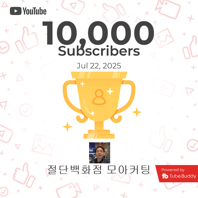 다시 한번, '절단백화점 모아커팅'의 든든한 지원군이 되어주신 1만 구독자 여러분께 진심으로 감사드립니다.